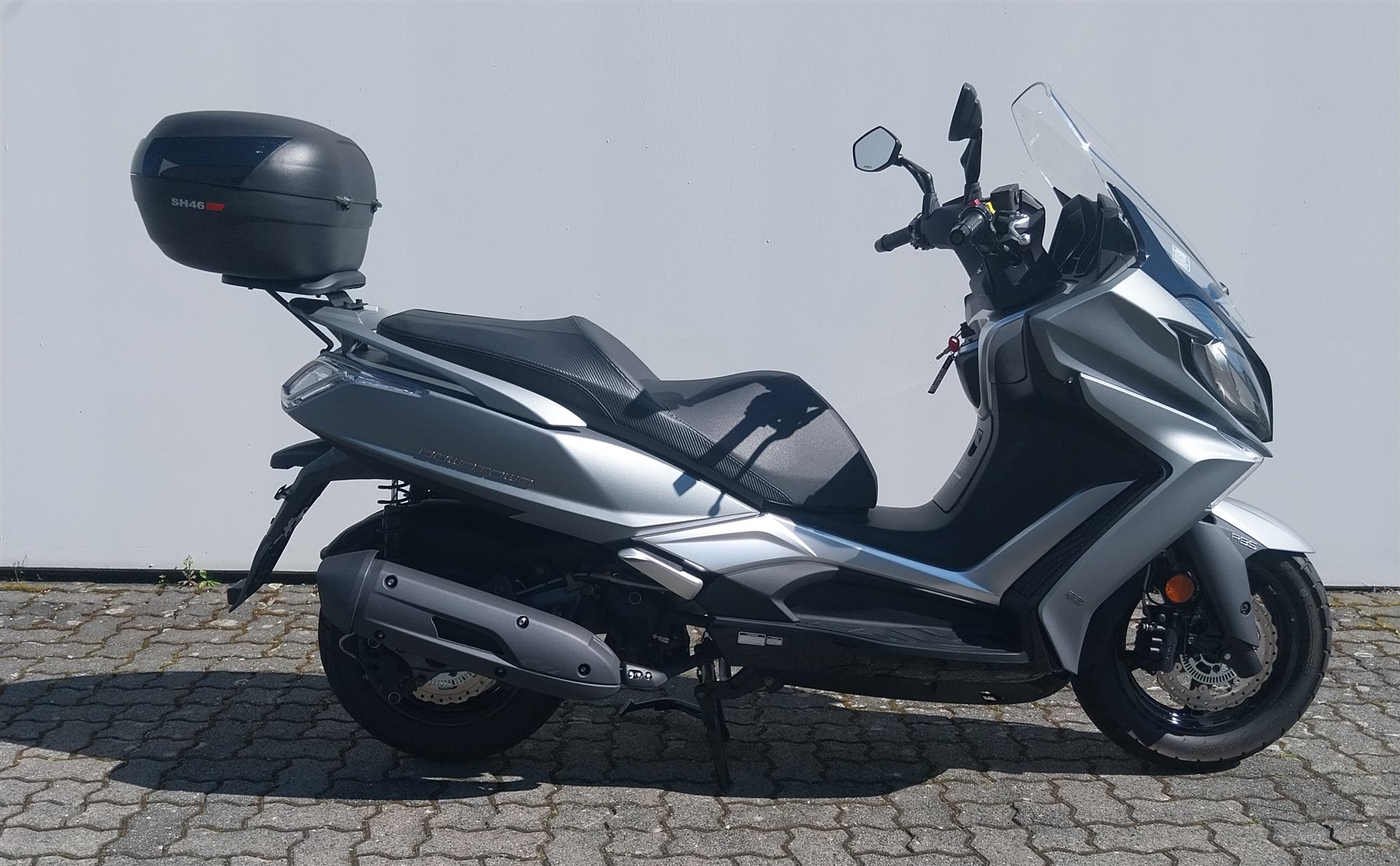 Zusätzlich ist der Roller mit einem praktischen 46l Topcase ausgestattet, das ausreichend Stauraum für Helm oder Einkäufe bietet perfekt für den Alltag oder kurze Touren.